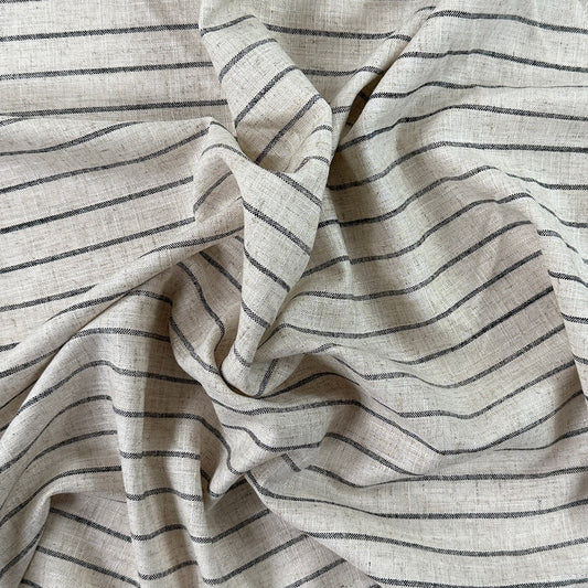 Silky Linen Viscose Noil - Natural & Black Stripe