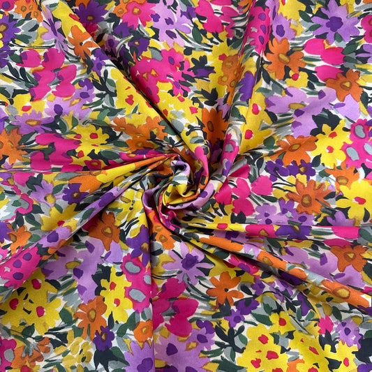 Digitally Printed Stretch Cotton Sateen - Fuchsia