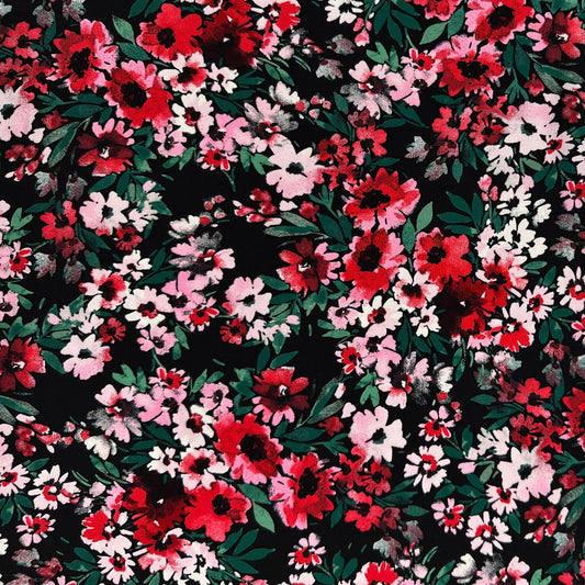 Black & Red & Pink Floral - Rayon Challis