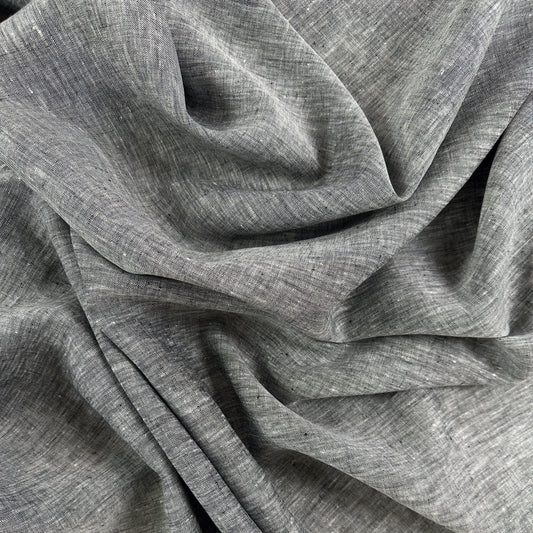 Yarn Dyed 100% European Linen Plaid - Heathered Black & White - 60"
