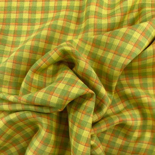 Yarn Dyed European Linen Plaid - Green, Yellow & Orange Check - 60"