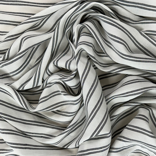 Stripes - White & Black - Yarn Dyed Linen Blend