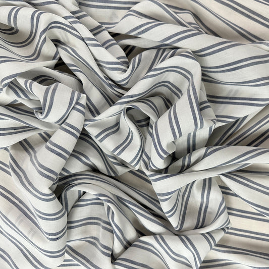 Stripes - White & Navy - Yarn Dyed Linen Blend