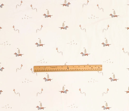32" Remnant - Dachshund Ducks Blue - Cotton Jersey Knit