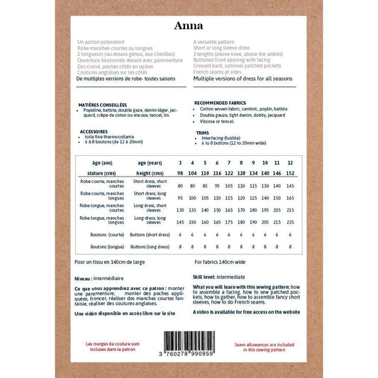 Ikatee - ANNA Child Dress - 3/12Y - Paper Sewing Pattern