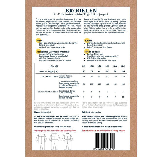 Ikatee - BROOKLYN Jumpsuit - Baby 6M/4Y - Paper Sewing Pattern