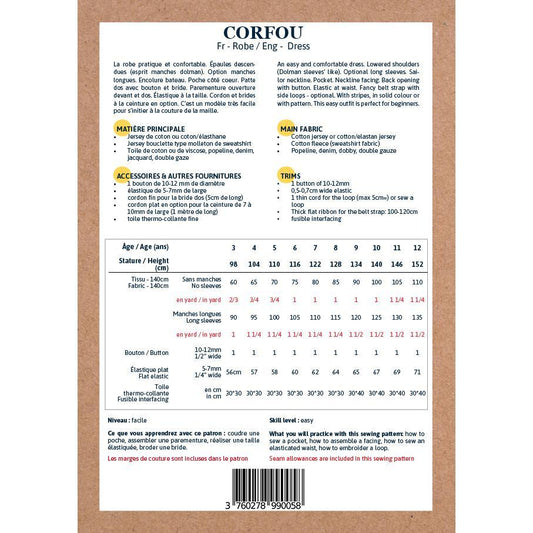Ikatee - CORFOU Dress - 3 - 12 Years - Paper Sewing Pattern
