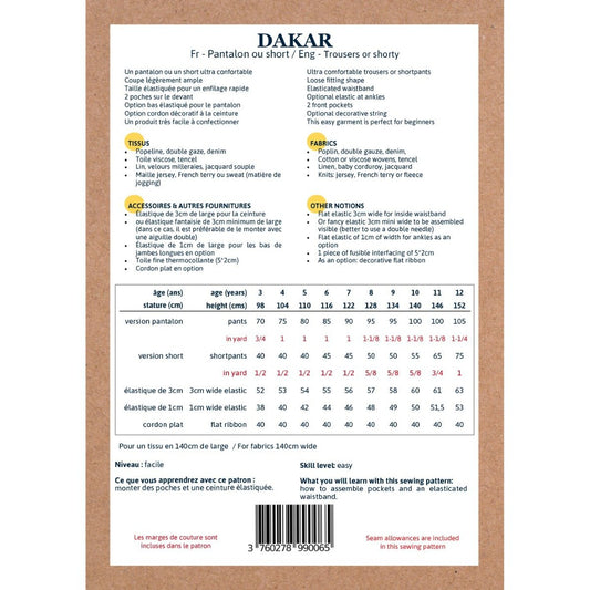 Ikatee - DAKAR pants or shortpants - Age 3 - 12 Years - Paper Sewing Pattern