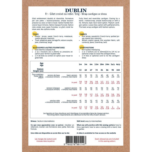Ikatee - DUBLIN Cardigan or dress - Baby 1M-4Y - Paper Sewing Pattern