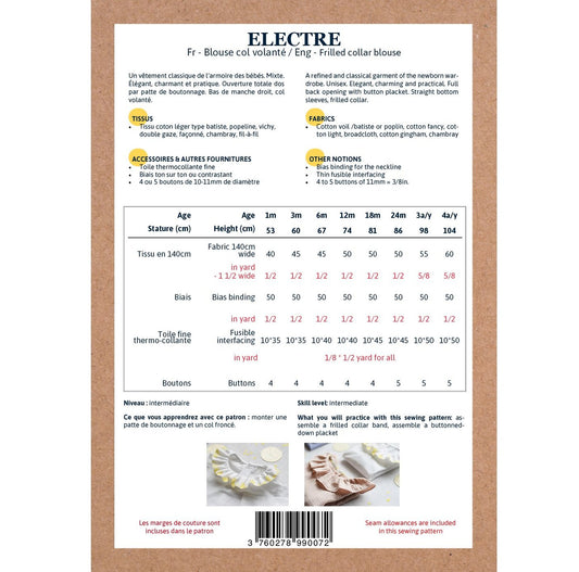 Ikatee - ELECTRE frilled collar Blouse - Baby 1M-4Y - Paper Sewing Pattern