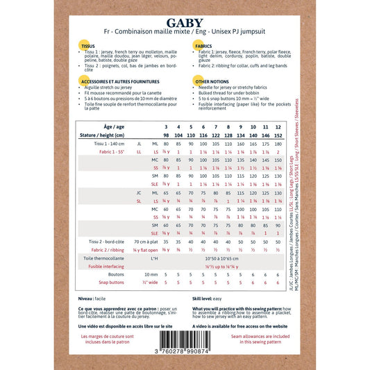 Ikatee - GABY Jumpsuit -PJ - Unisex 3/12 - Paper Sewing Pattern