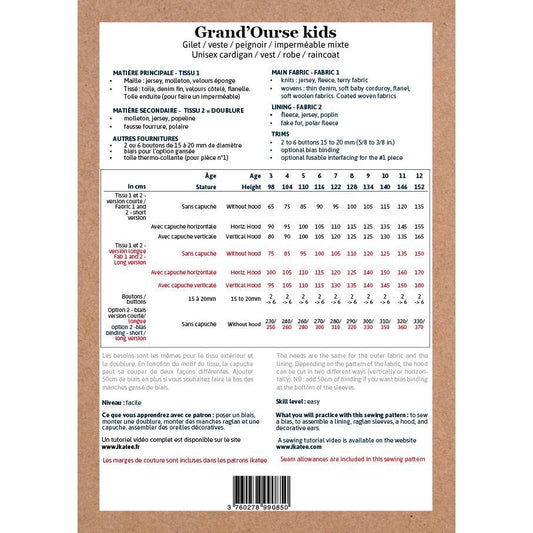 Ikatee - GRAND'OURSE Kids Cardigan - 3-12Y - Paper sewing pattern