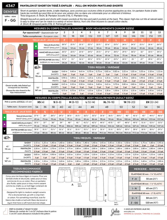 Jalie - 4347 - DENYSE Woven Pants & Shorts