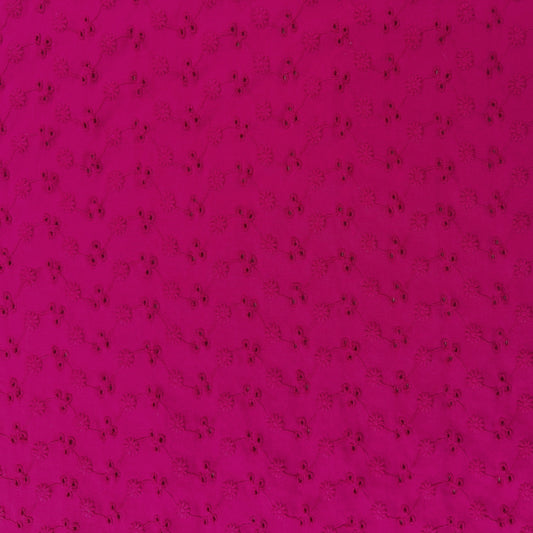 Stretch Cotton Embroidered Florals - Fuchsia