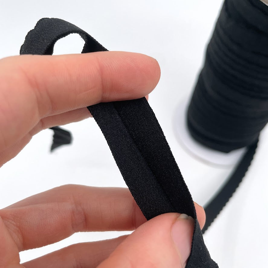 3/4" (19mm) Pre-Folded Scalloped Matte Black Elastic