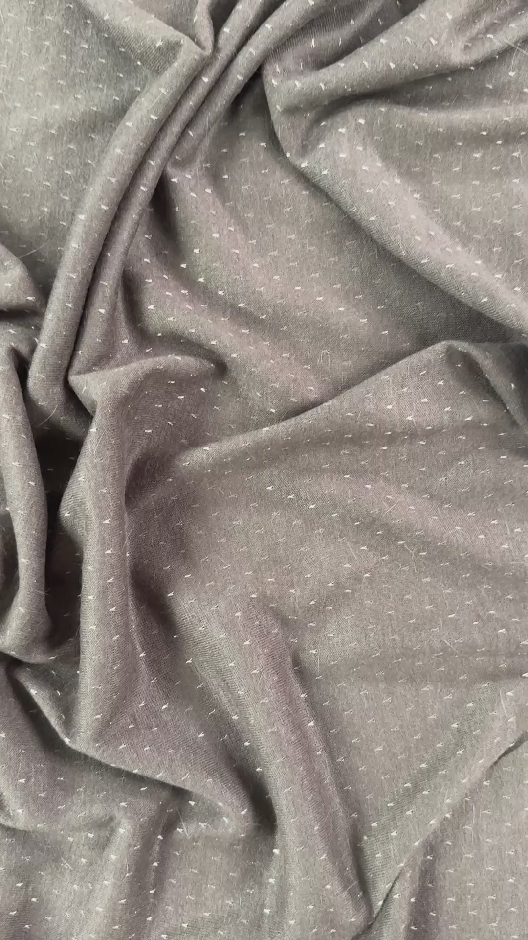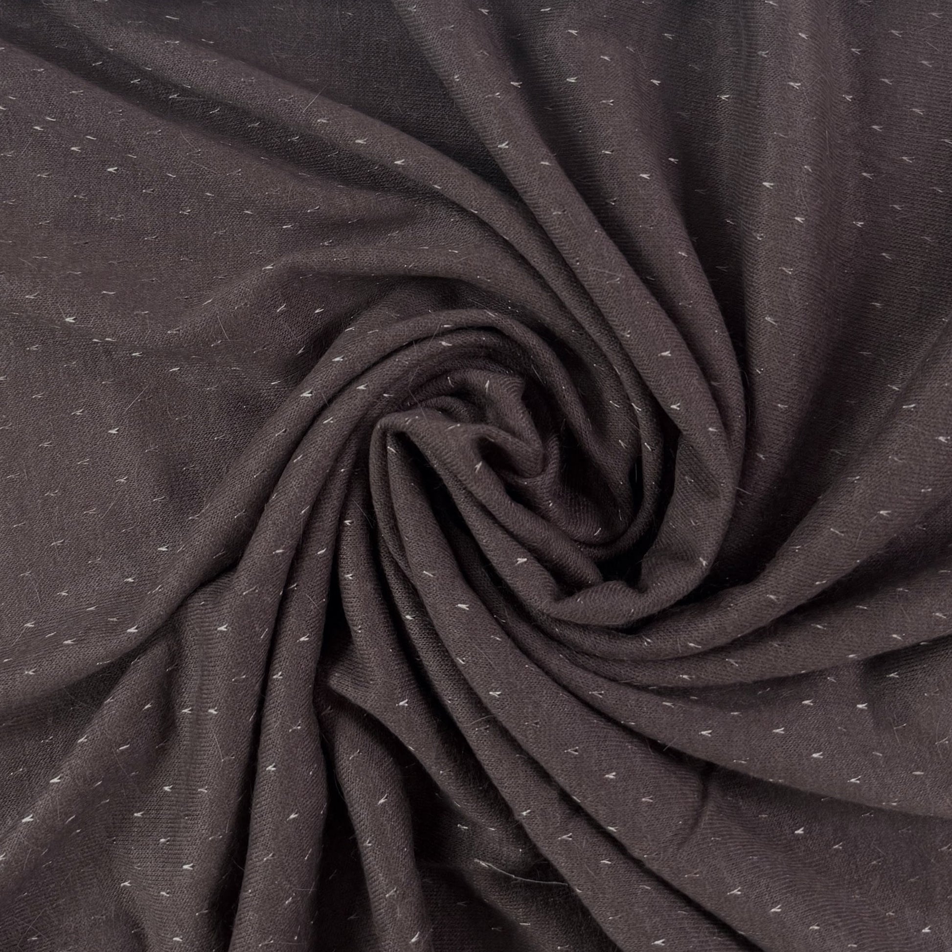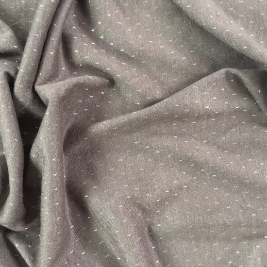 This fabric is brown with purple undertones and features tiny v's of metallic lurex fibres. Lightweight and silky soft, this sweater knit fabric has plenty of drape and movement. Use it for cardigans, light sweaters, dresses & more.