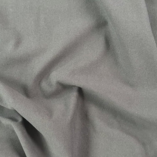 Soft bamboo cotton french terry knit fabric in black. This fabric is midweight, fully opaque and has 4 way stretch. Warm and cozy, use this fabric for sweatpants, sweaters, lounge clothing, kid's clothing & more.