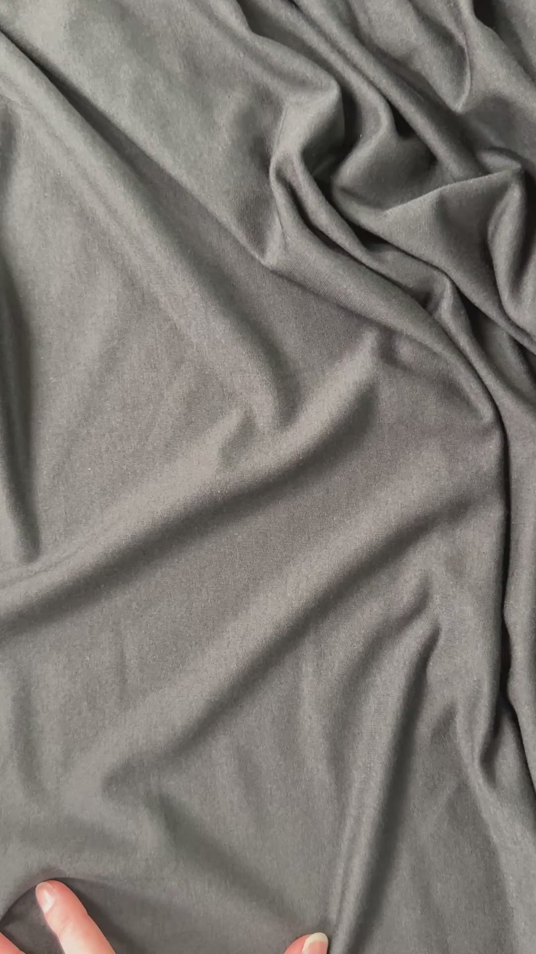 Soft and cozy bamboo and cotton french terry fabric in black. A great midweight multipurpose fabric with some stretch for added comfort. Use it for sweatpants, hoodies, cardigans, baby clothes & more. Slightly lighter weight than our other bamboo french terry.