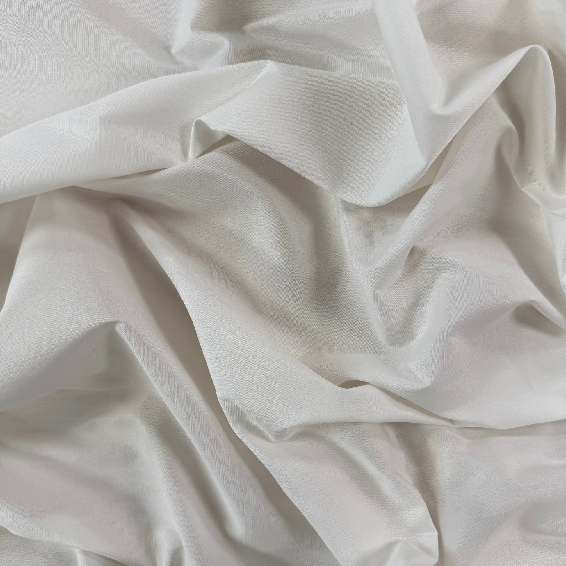 Plain white 100% cotton poplin fabric. Smooth crisp hand. Soft, breathable and versatile, this fabric is the perfect blank canvas for your sewing needs.