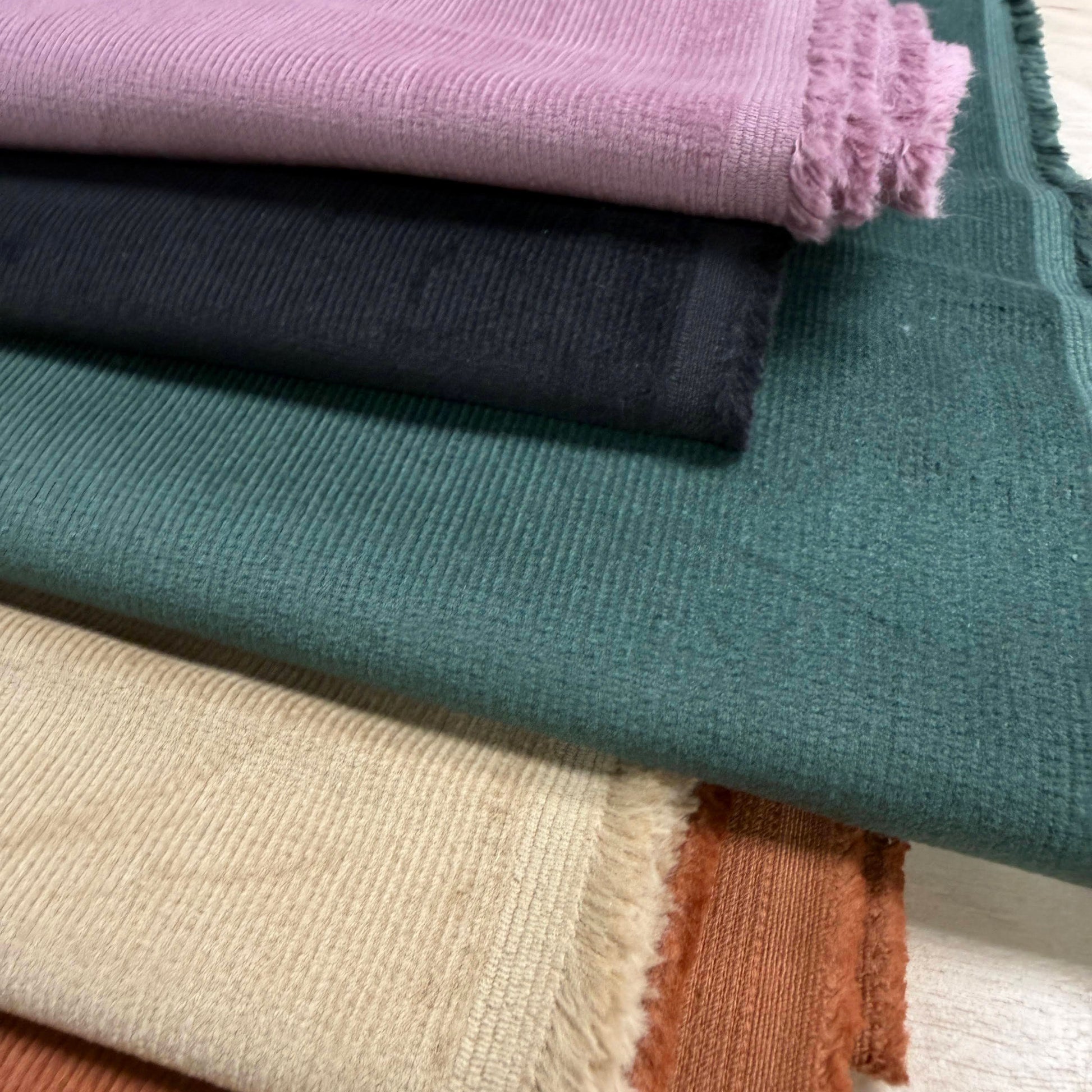 A classic 16-wale corduroy made from 100% cotton, featuring a velvety soft, brushed right side. It has moderate stretch for comfort and ease of movement, with a crisp yet structured drape that makes it extremely versatile. Ideal for lightweight jackets, dresses, overalls, jumpsuits, overalls and workwear-inspired pants. A versatile staple that transitions easily through changing seasons.