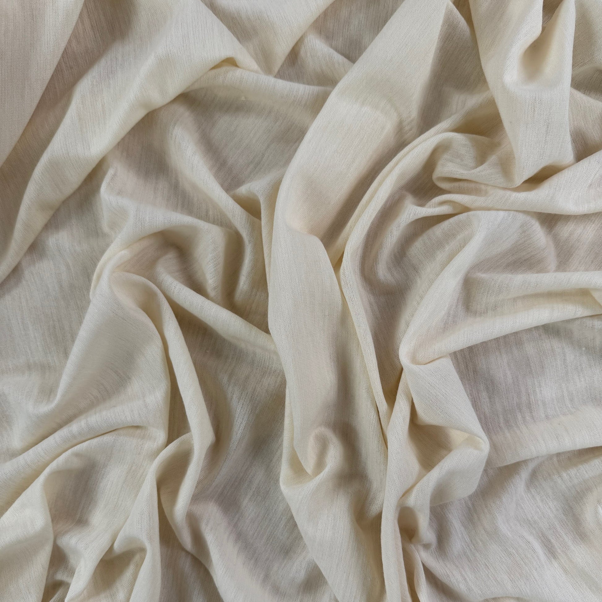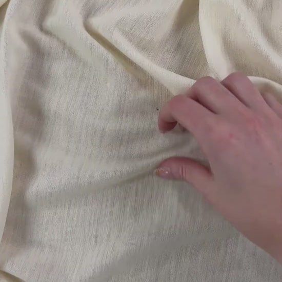 100% wool knit jersey in the shade ivory. This is not as soft are our superfine merino wool. If you are sensitive you may find it a little scratchy to the touch so we recommend this for garments that aren't next to skin or are lined. Would make a fabulous and perfect interlining to add warmth to a jacket.