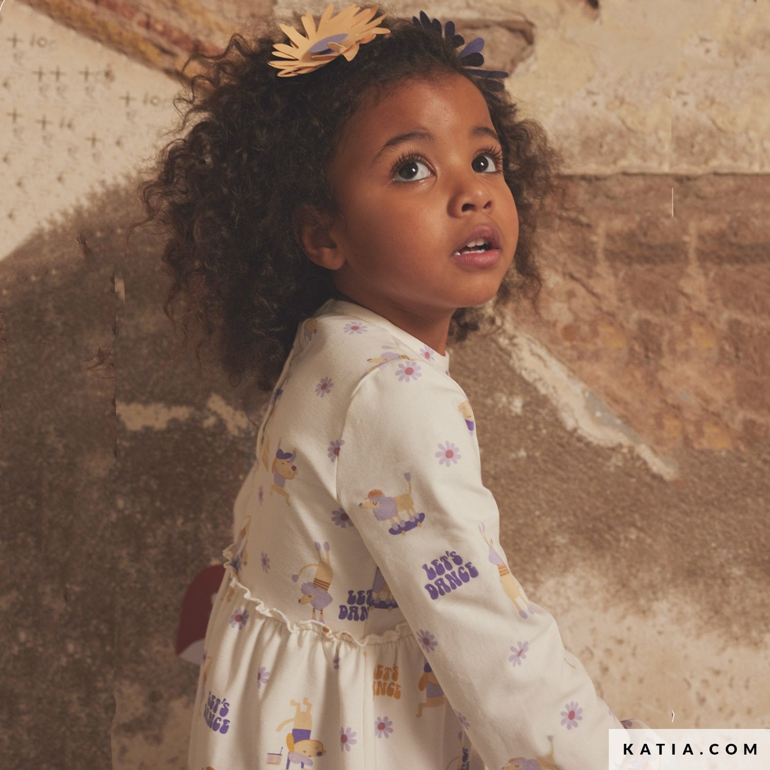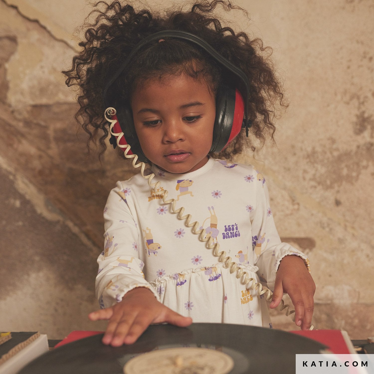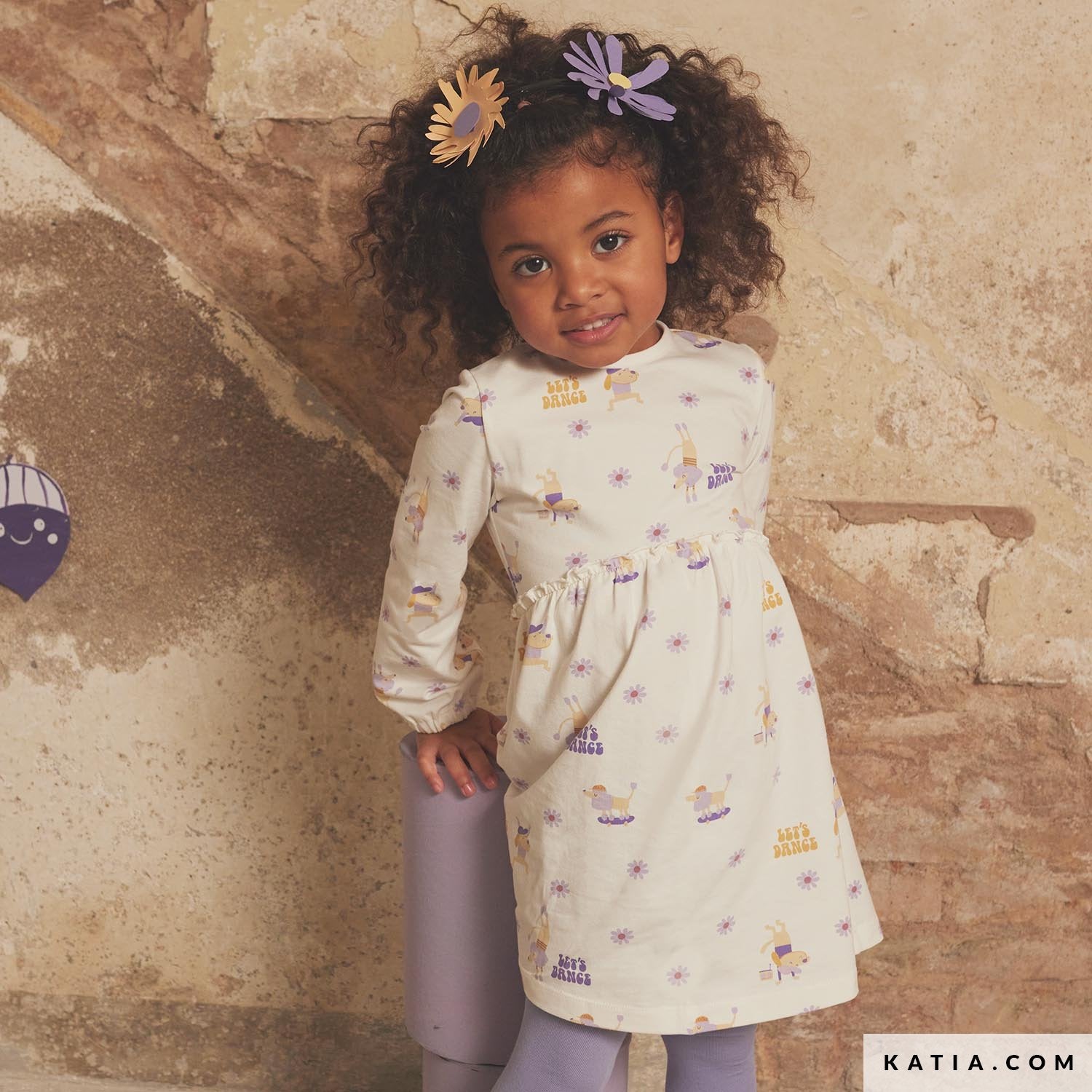 This soft and comfortable jersey fabric by Katia Fabrics featuring fun dancing dogs with the motto Let's Dance, is the ideal fabric to sew T-shirts or pants for the youngest members of the family.