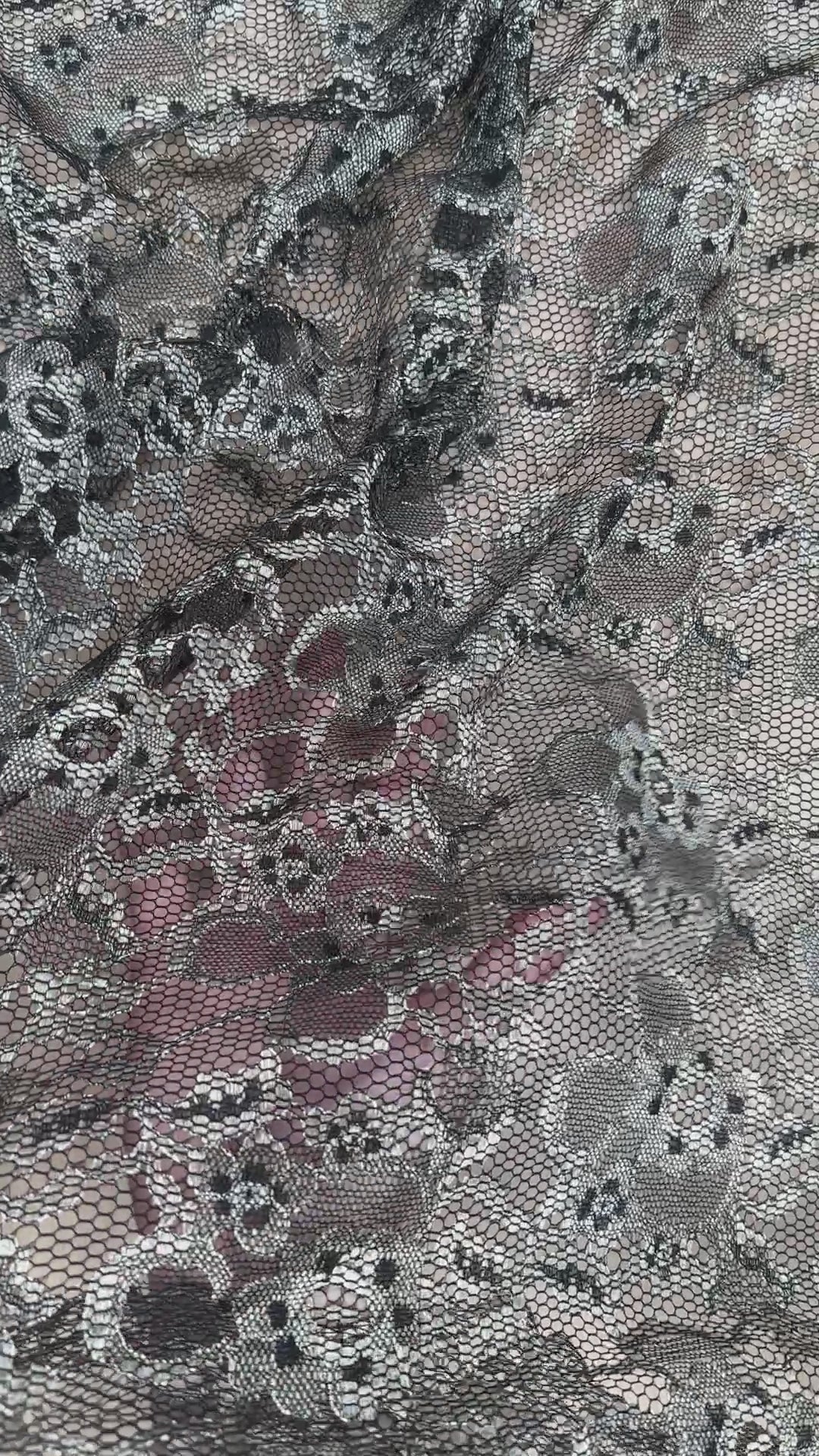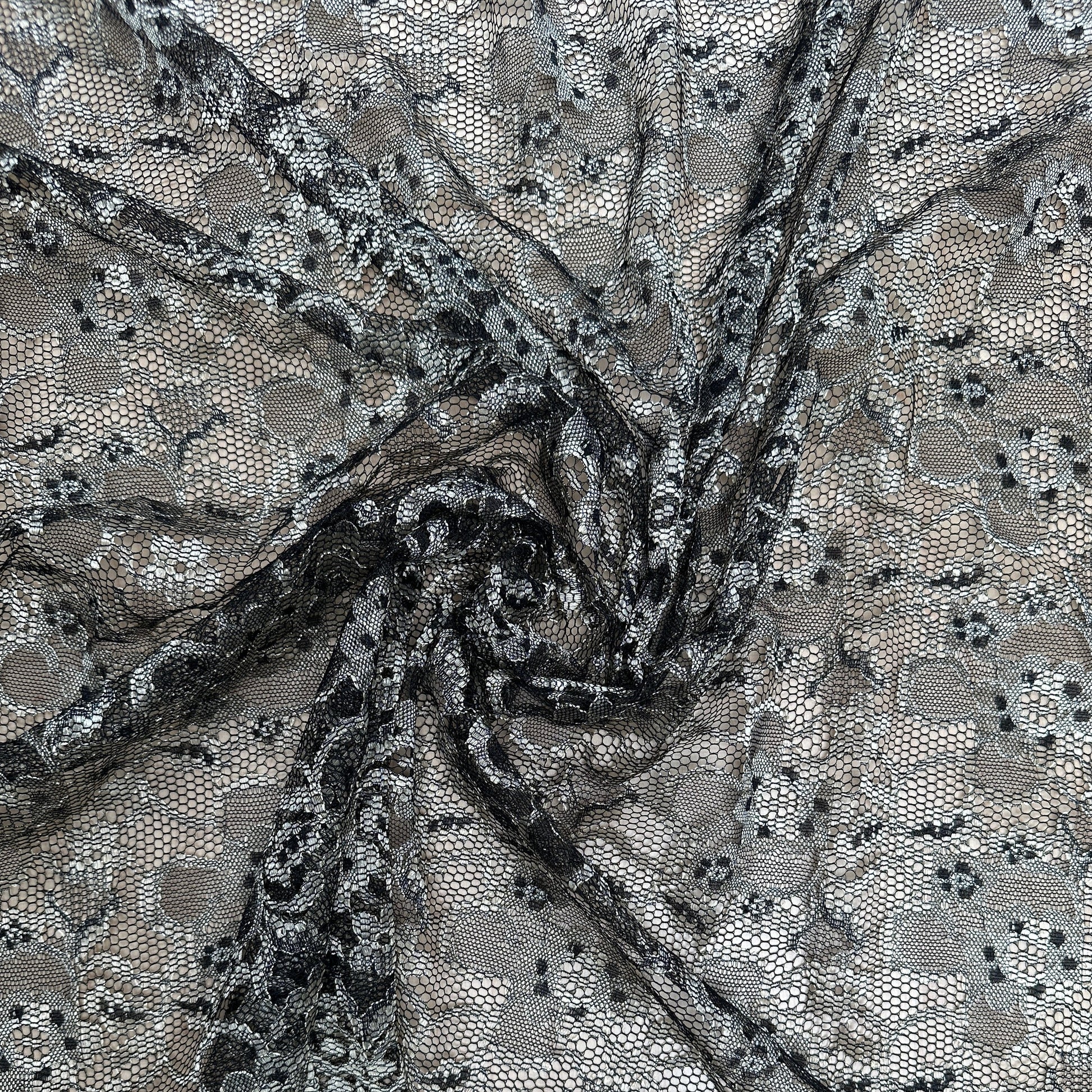 Gold and Black Nylon Floral Lace - Metallic Foil - Deadstock