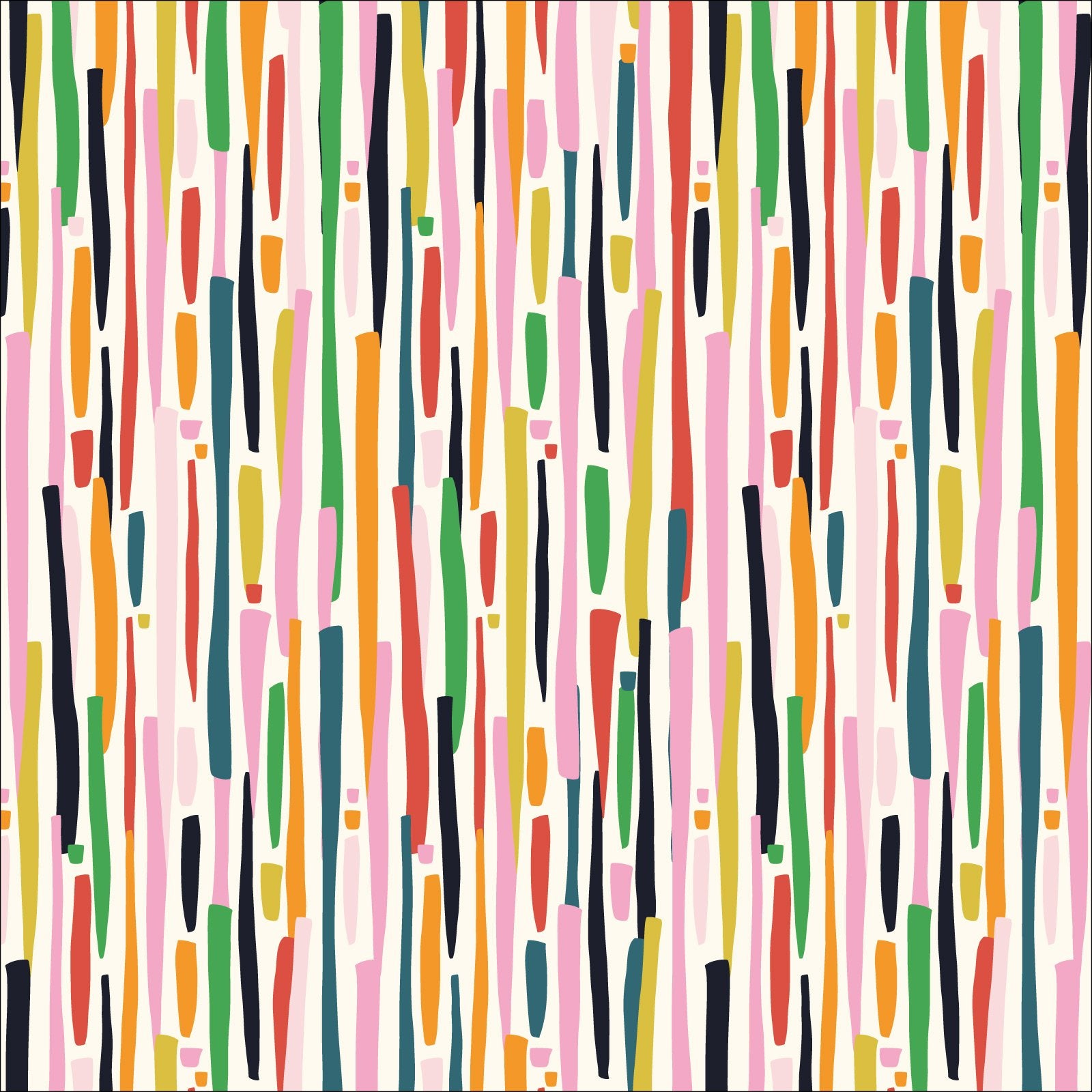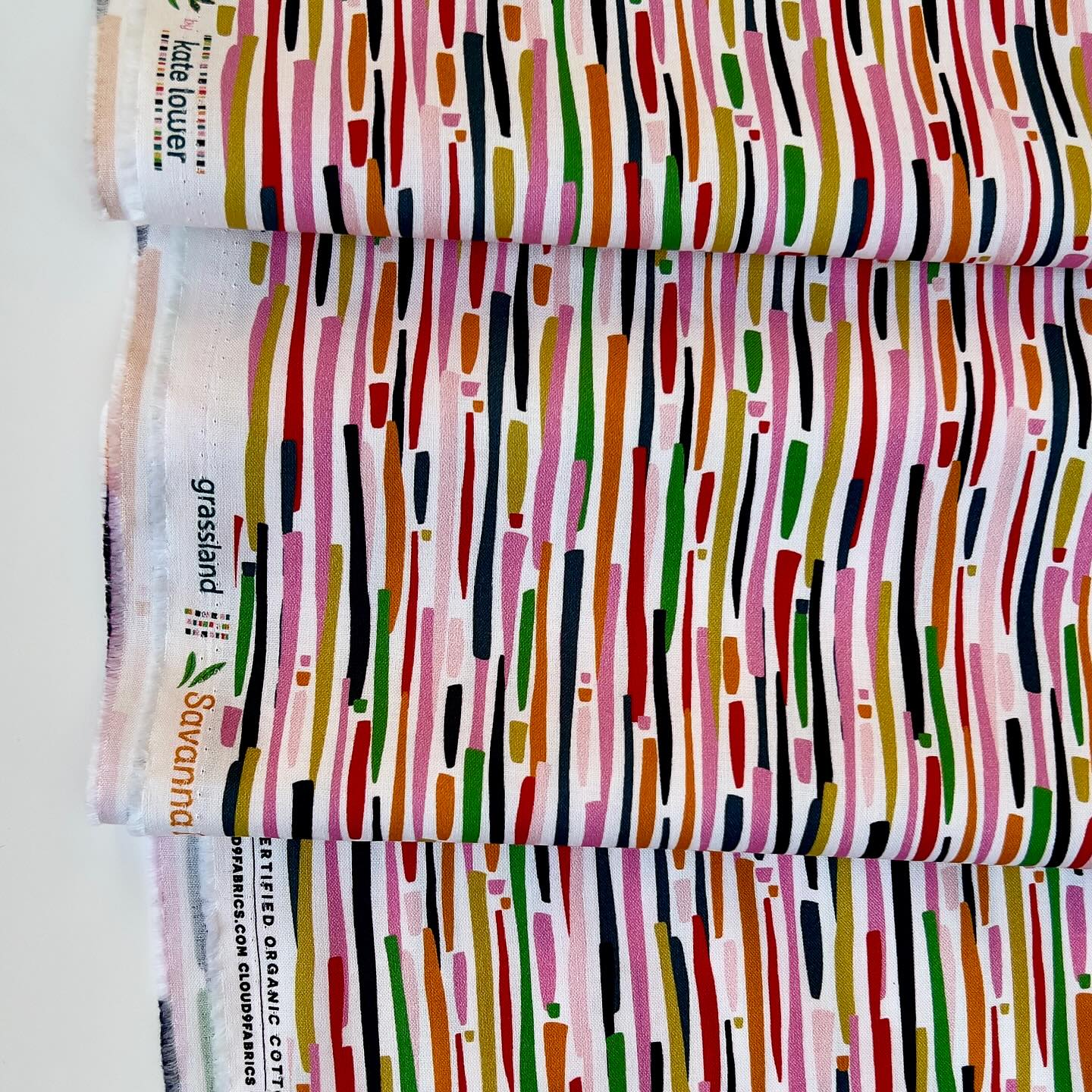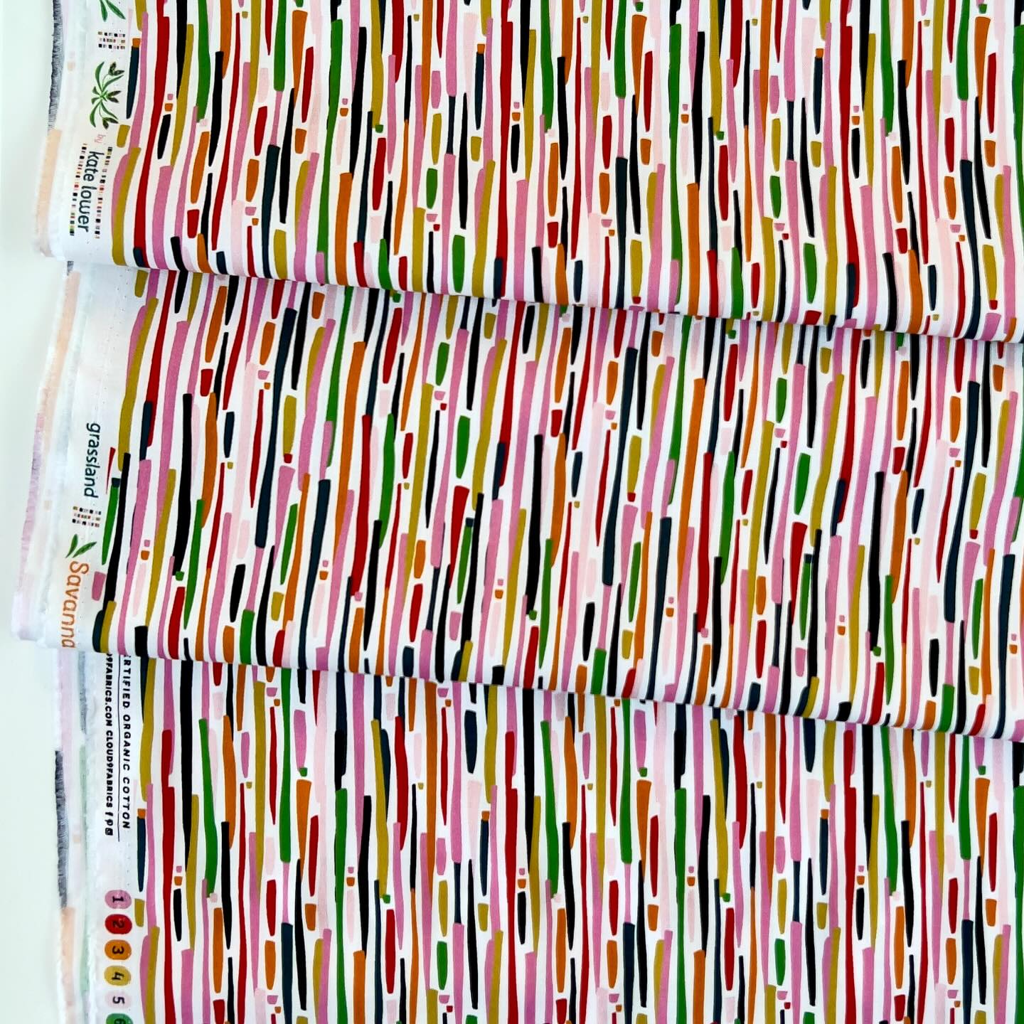 Bright and colourful line print. Lines are parallel to selvage