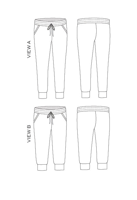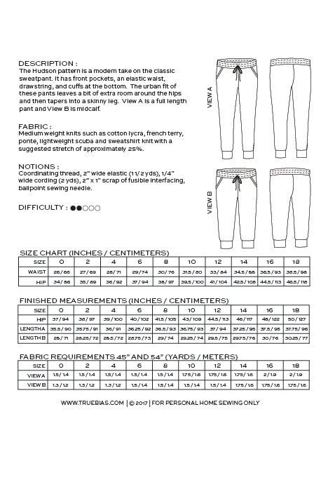 The Hudson pant is the piece of clothing that you will wear all of the time. It is comfortable enough to wear around the house, but can easily be dressed up to go run errands. The modern fit of these pants leaves a bit of extra room around the hips and then tapers into a skinny leg. View A is a full length pant and View B is midcalf.