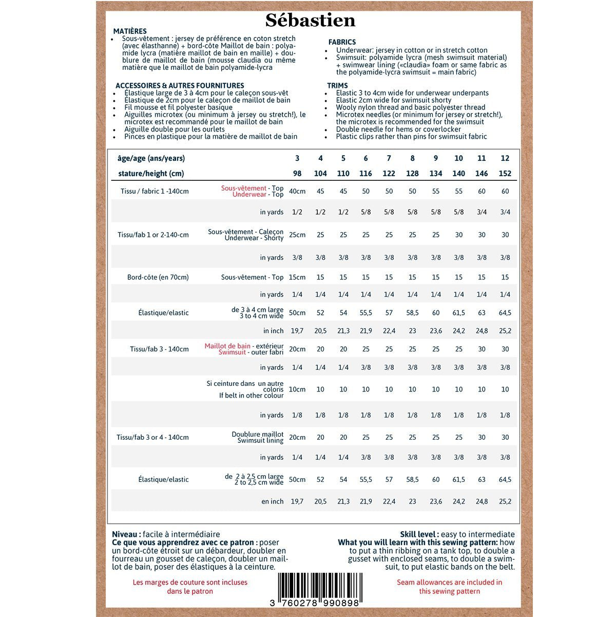 Ikatee - SEBASTIEN Underwear set + Swimsuit - Kids 3-12Y - Paper Sewing Pattern