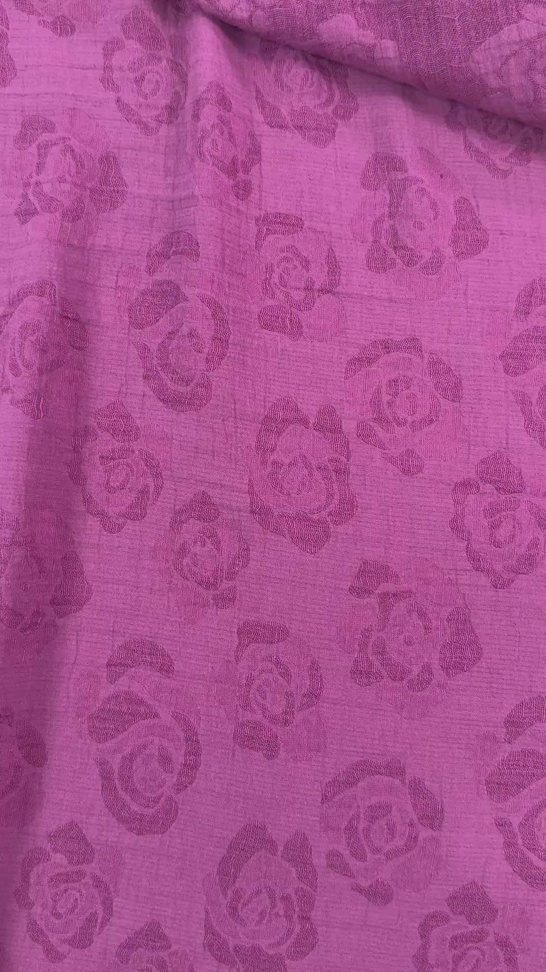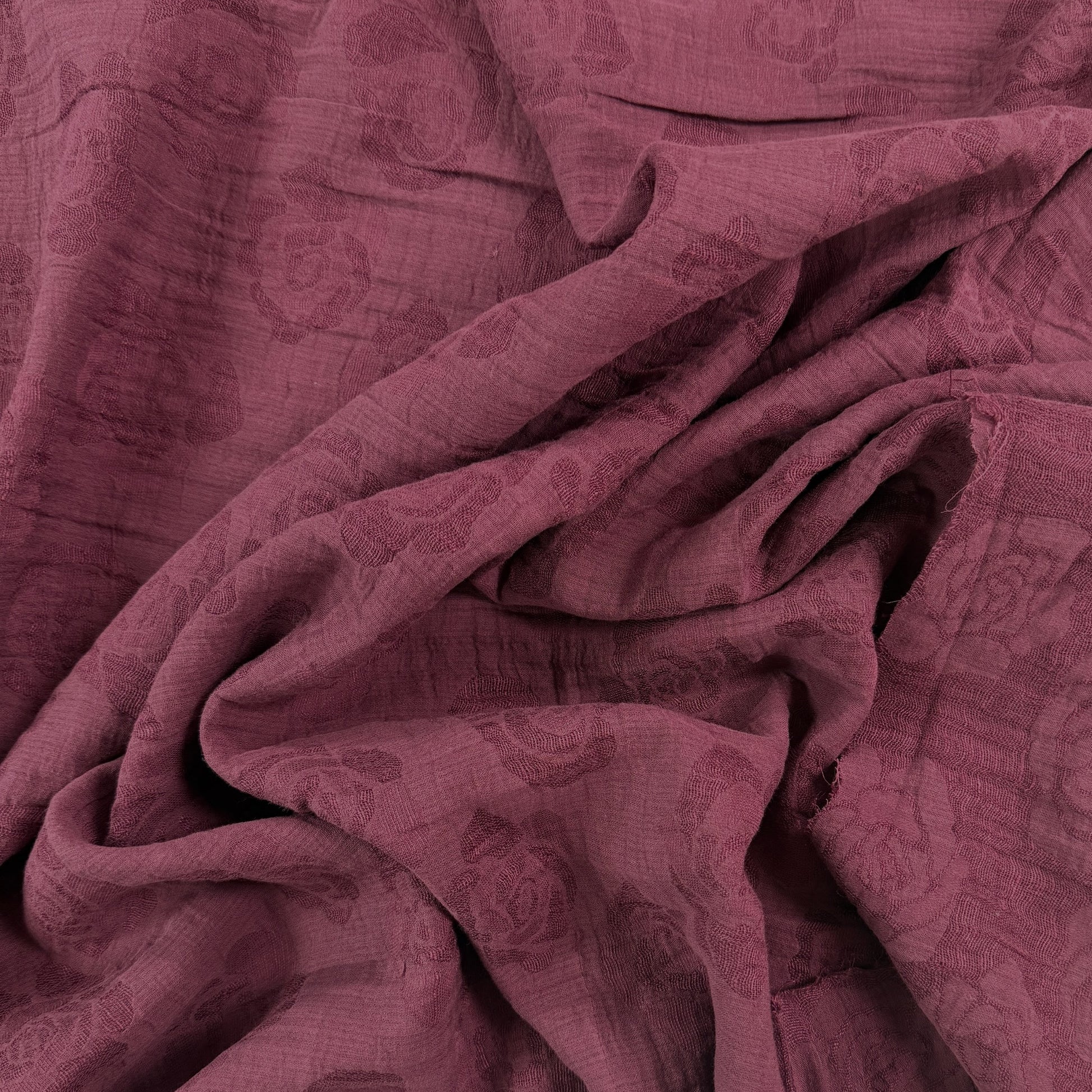 Use either side of this reversible cotton linen fabric with a rose jacquard design. Loosely woven, soft and breathable, this fabric can be used for casual day wear or more sophisticated evening wear during warmer months.