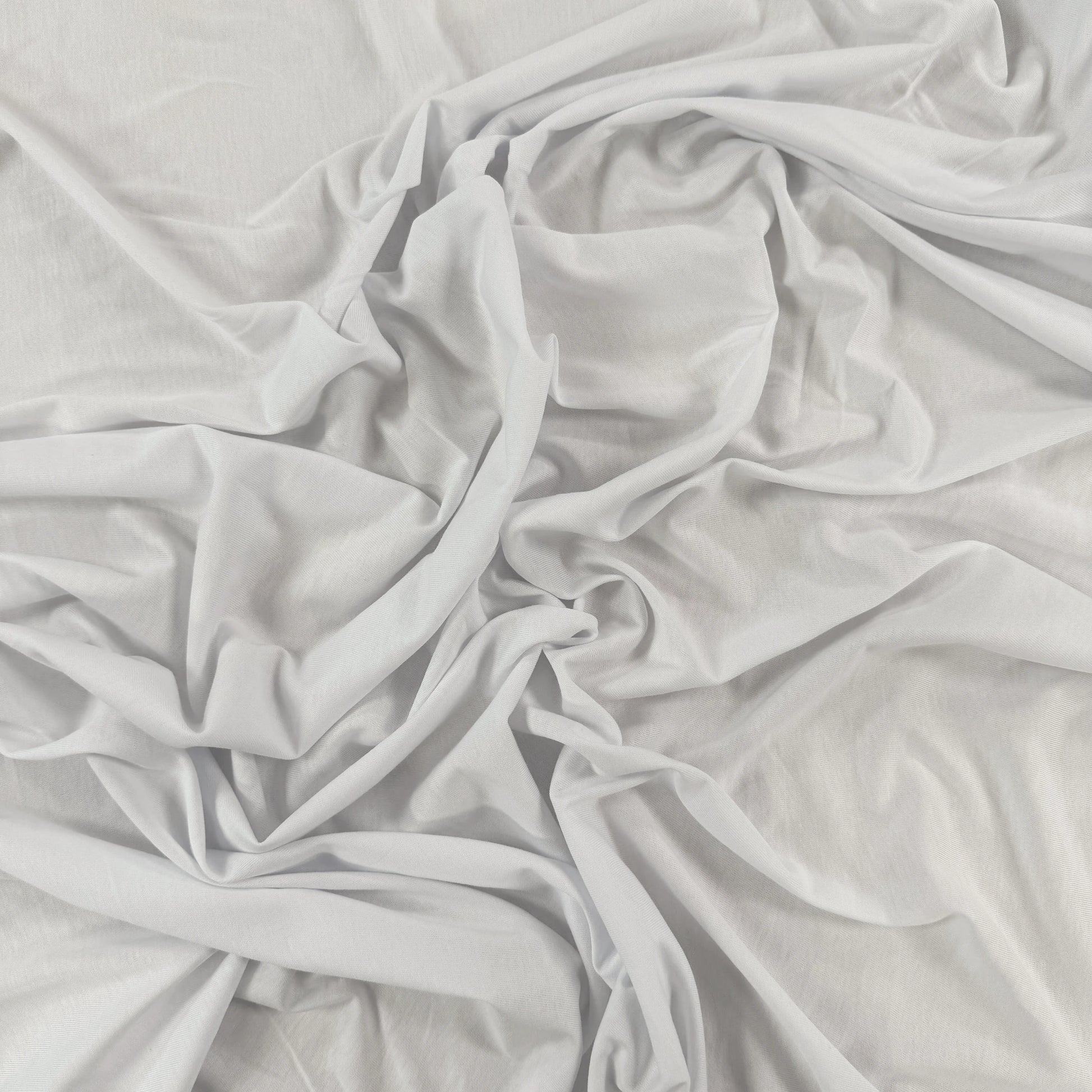 100% organic cotton jersey in white. Comfortable, breathable and soft, this fabric is a great choice for everyday casual wear. Use it for t-shirts, shorts, long sleeve tees & more.