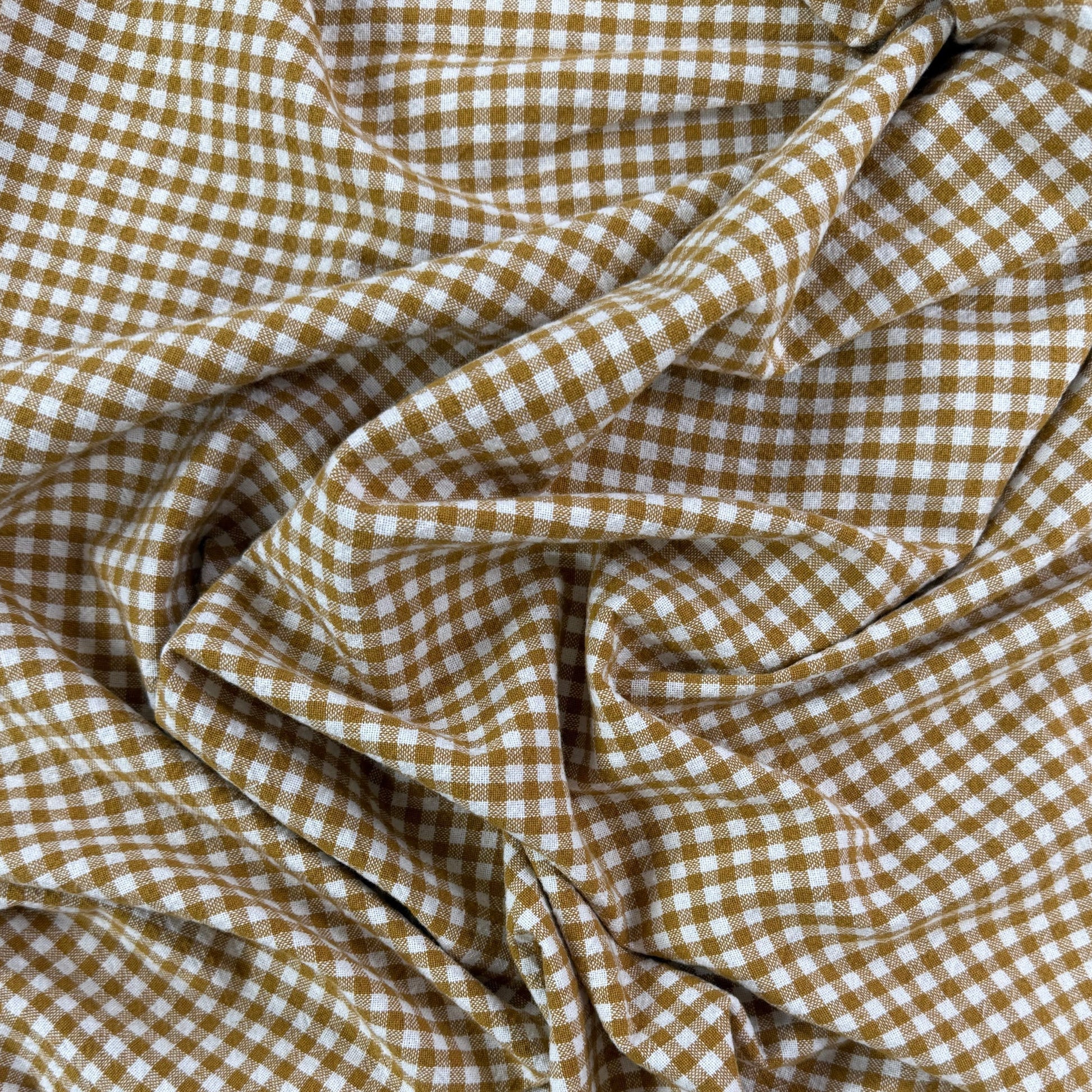 Woven heavyweight gingham in mustard and white. The heavier weight makes it great for fall dresses or skirts.