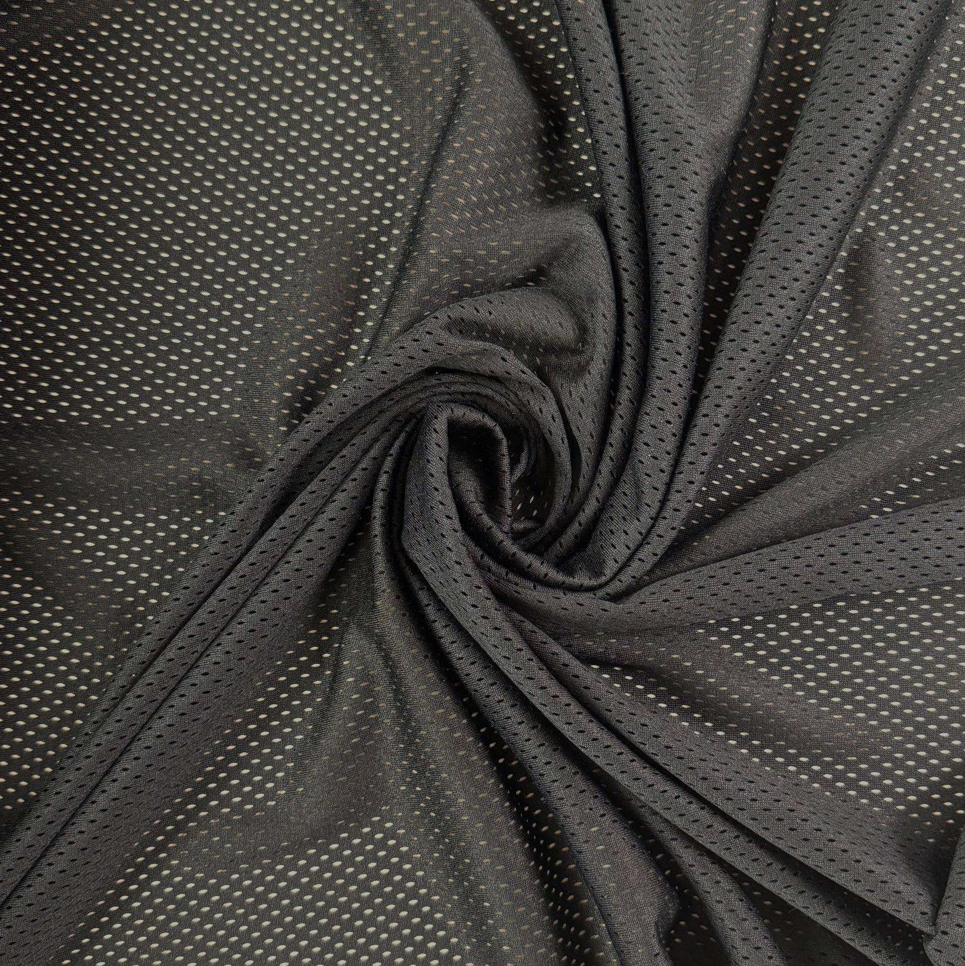 Ultra breathable sports mesh fabric with tricot warp knit engineering. This fabric features tiny eyelets that improve air flow and breathability. Use it for sports jerseys, jacket lining, mesh tanks, or breathable cut outs.