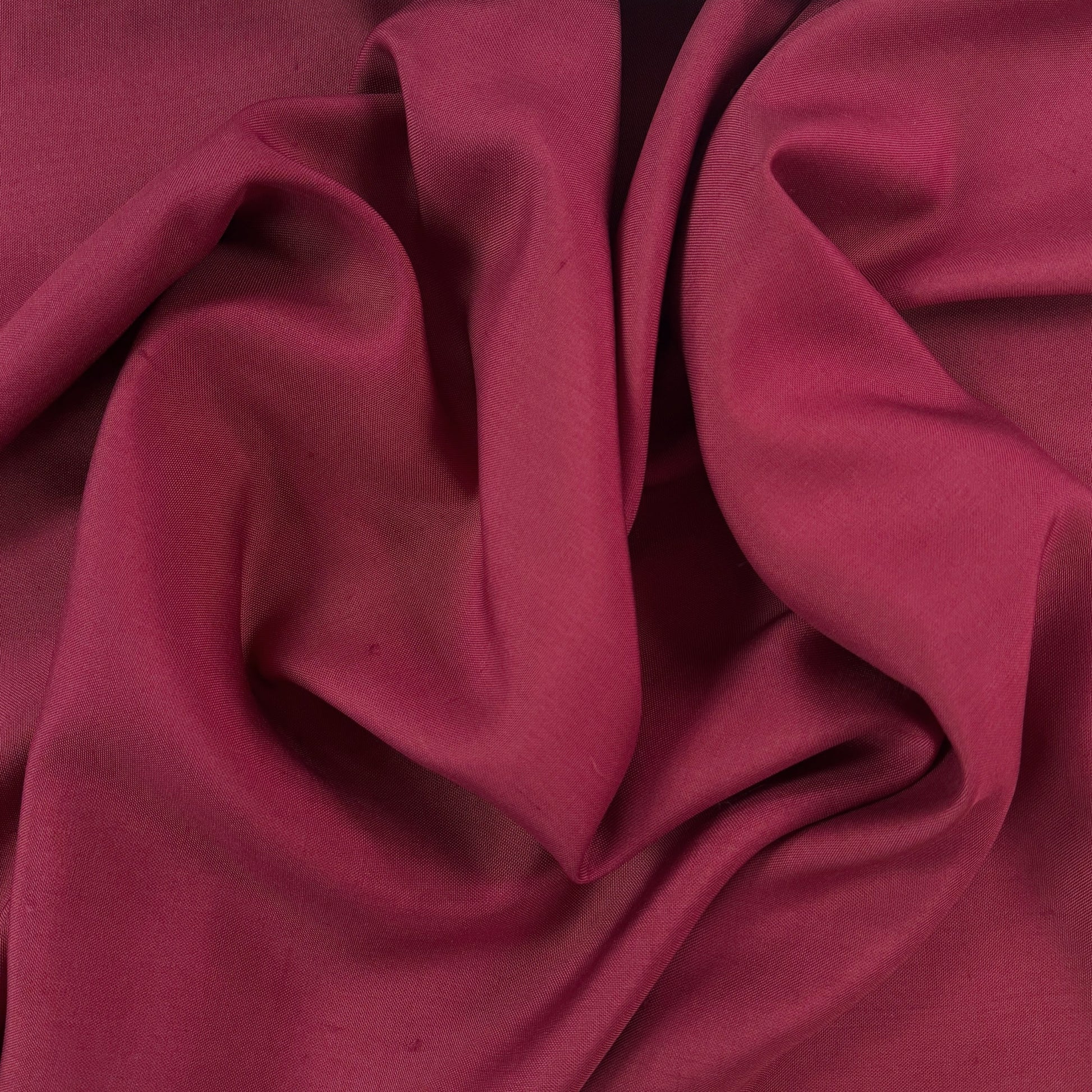 A gorgeous wine 100% silk shantung fabric. Beautifully crisp with some fluidity, this fabric has fine, uneven slubs throughout that add texture and dimension. It has a subtle lustre on both sides that catches the light and creates a vibrant, luxurious appearance. Use it for evening wear, blouses, gowns, drapery & more.