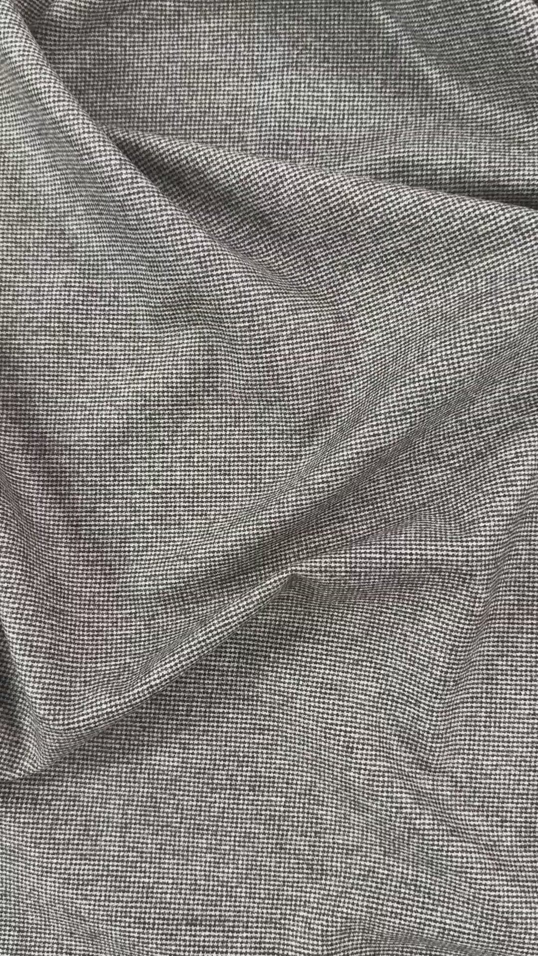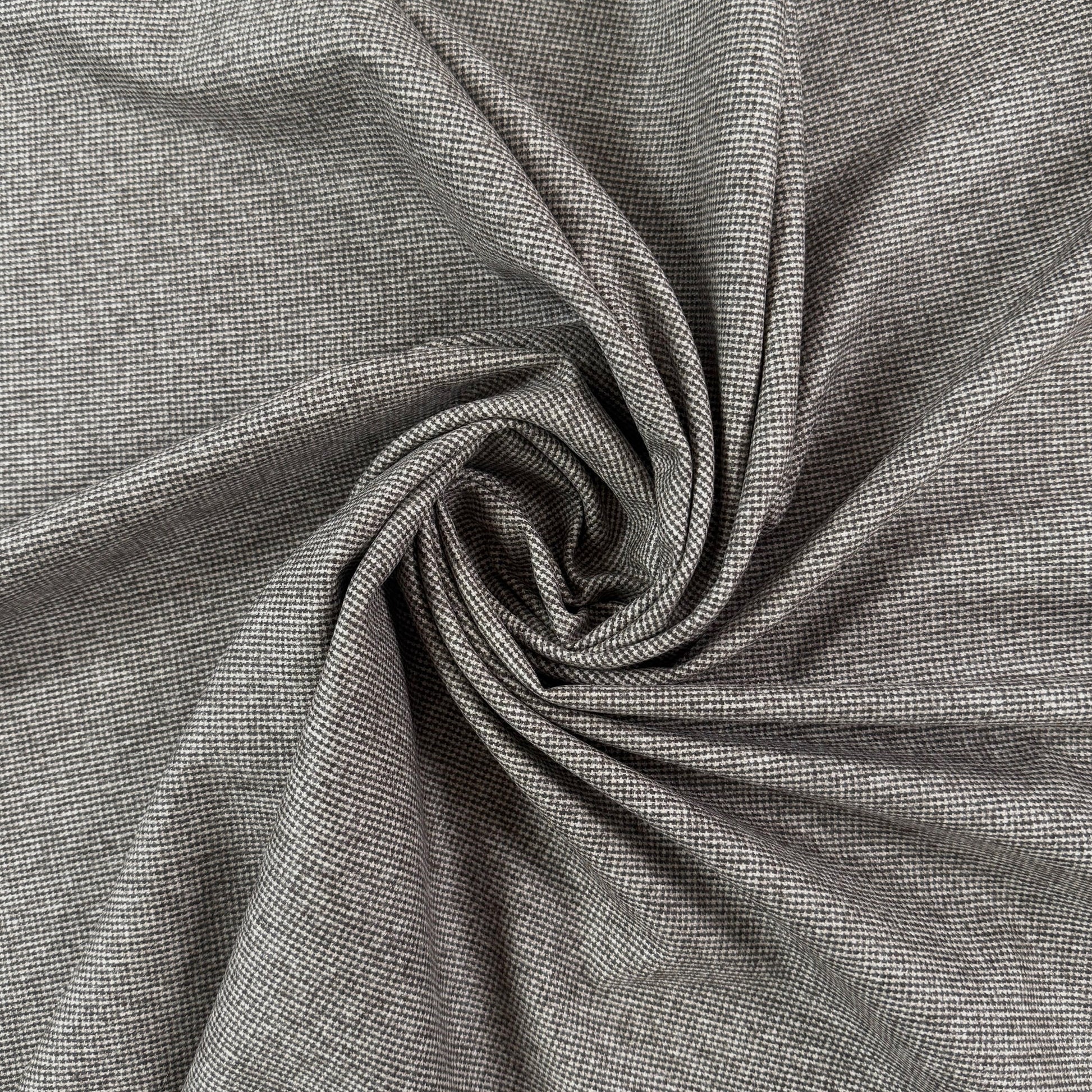 Gorgeous superfine (19.5 microns) wool fabric featuring a teeny tiny houndstooth print. This fabric is medium to heavy weight, breathable and durable, making it a great choice for transitional garments such as light jackets, trousers & more.