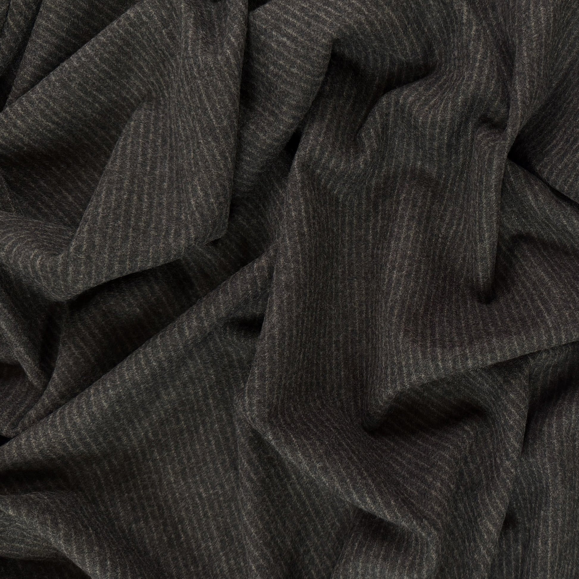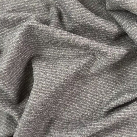 A gorgeous deadstock wool fabric featuring a subtle pinstripe in a lighter grey. This fabric is smooth to the touch and has some drape. Use it for winter suits, dresses, skirts & more.